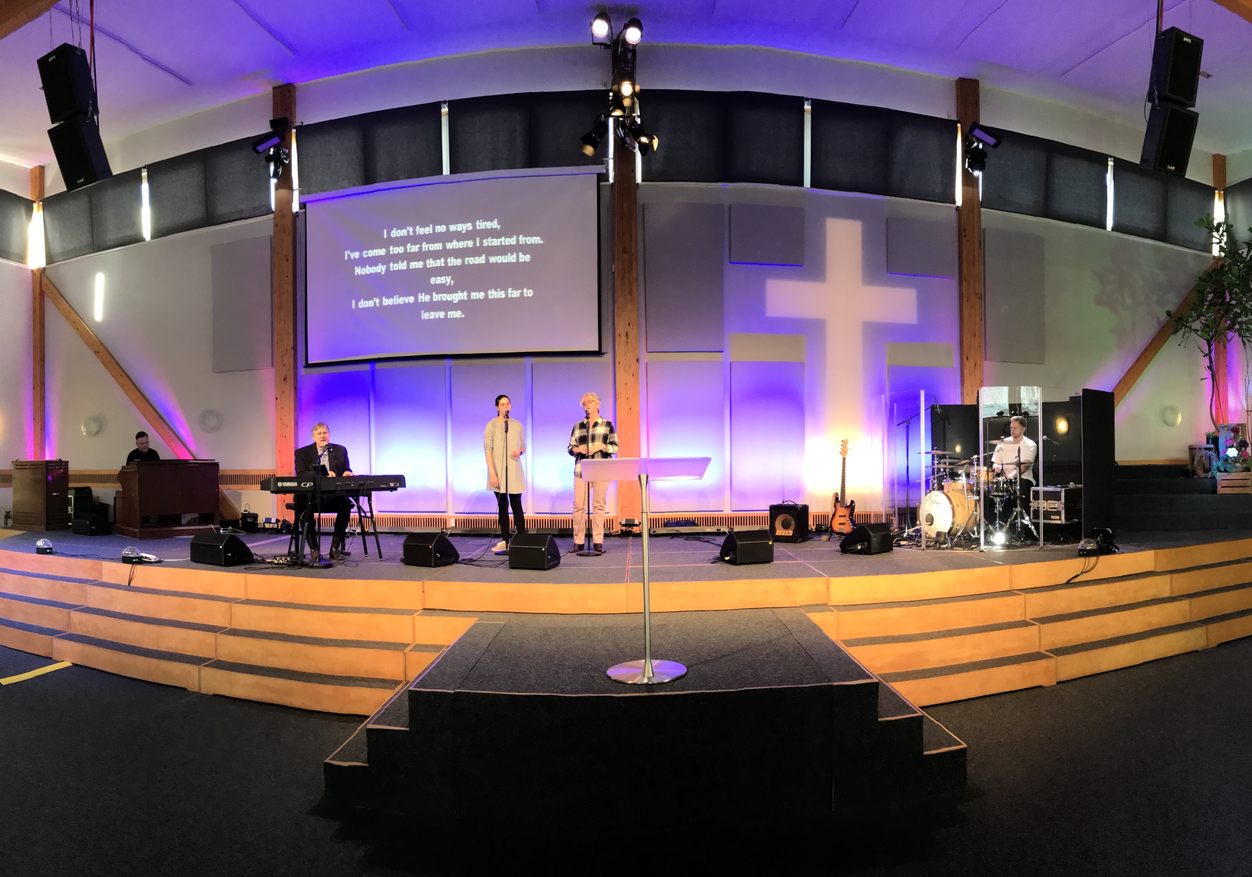 Musikalisch wird der Gottesdienst von der gemeindeeigenen Band, Sängerinnen und Sängern unter der Leitung von Hans-Peter und Angela Mumssen begleitet. Geprägt von der Gospelmusik werden sowohl traditionelle Kirchenlieder als auch Lobpreislieder gesungen.